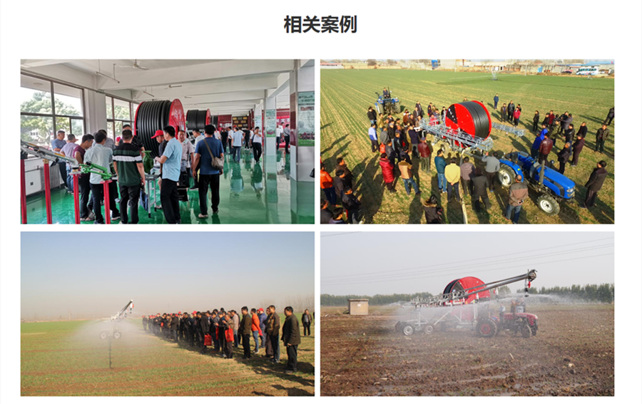 主要特點: 1、軟水帶直接連接機井水泵,有2個水壓就能澆地。 2、軟水帶可快速連接,每根20米,根據(jù)地頭長短靈活安裝。 3、噴灌車用48伏電池組800瓦電機驅(qū)動,自動行走鋪放水管,每分鐘最快行走45米,能慢也能快。用手搖絞盤鋪管,還能回收,用著很簡單,一個人就搞定,省勁。 4、噴灌車固定位置澆地,多噴槍組合式噴灑,270度大半圓作業(yè)。80毫米的水帶,最大出水量50噸/小時,1小時澆地約1.5-2畝。 5、水泵提供水壓越大,噴槍噴射半徑越大,流量越大,最大噴射半徑是35-40米。 6、每個噴槍配置閥門,根據(jù)機井水泵的出水量,來選擇不同噴槍的開啟,調(diào)節(jié)噴槍組的出水量和噴射半徑。 7、遠處、近處由不同型號噴槍進行噴灑,不會漏噴,大大提高噴灑均勻度。想澆大小水隨意控制澆地時間。 8、澆完一段地塊,關停水泵,通過盤管器將水帶手搖方式盤回,啟動電機,移動噴灌車到水帶接口處,將噴灌車和水帶進行連接,再啟動水泵接著澆下一段地塊。 |